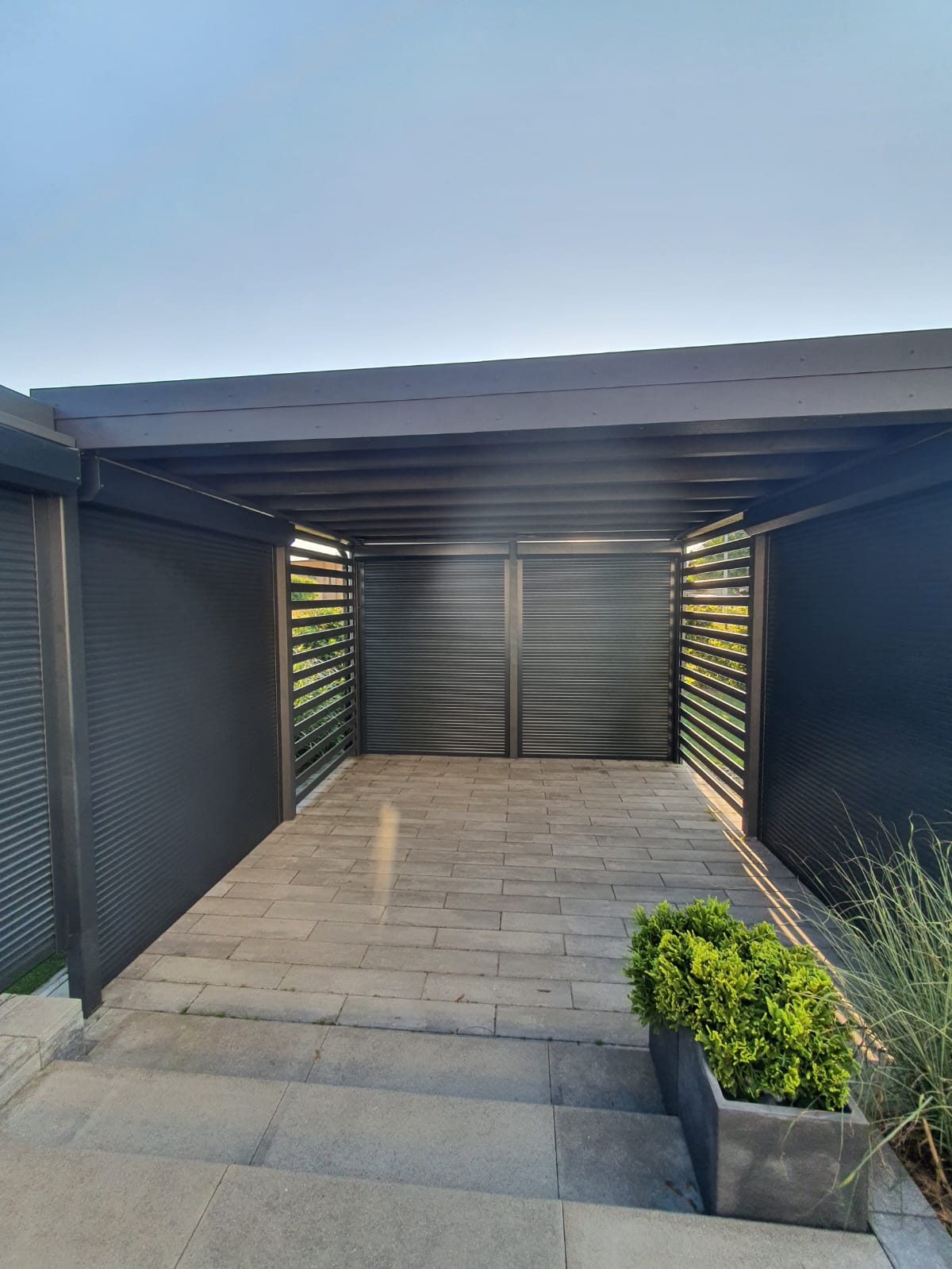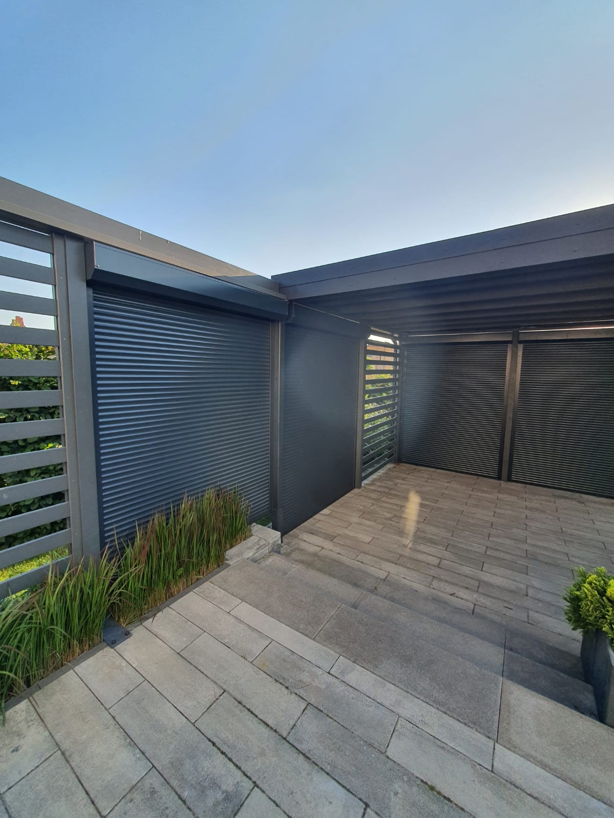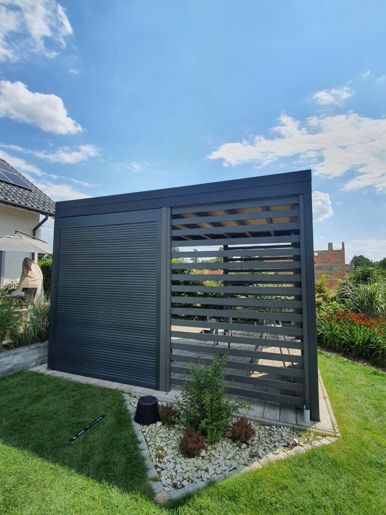 Najnowszy projekt – Elegancka Zabudowa Altany w Kolorze Antracyt z Przesłonami Rolowanymi Sterowanymi Elektrycznie!