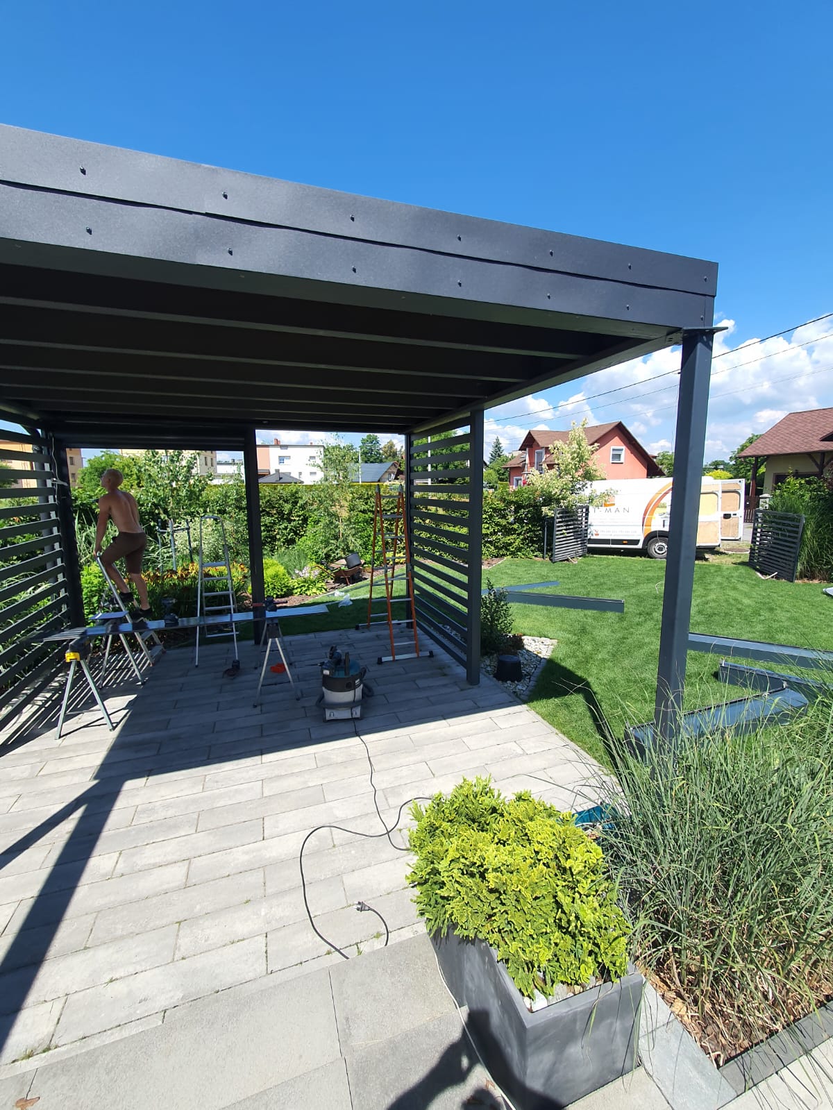 Cieszymy się, że możemy dostarczyć naszym klientom tak wyjątkową i funkcjonalną zabudowę, która nie tylko chroni przed słońcem i zapewnia prywatność, ale także dodaje uroku i stylu temu pięknemu ogrodowi.